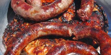 Boerewors is a traditional South African sausage made of ground meat (beef & pork or lamb), and spices such as coriander, black pepper & clove. Often cooked on a braai (outdoor fire/wood-burning grill).
